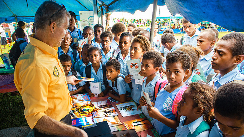 De omkring 330 øer, der udgør Fiji, er rige på skønhed, all inclusive feriesteder, krydstogtskibe og sportsdykning såvel som turisterne, der følger med dem. Men da de Frivillige Hjælperes Goodwill-turné for det sydlige Stillehav ankom, kom de for at hjælpe dem, der hjælper andre, Fijis sande skønhed – Fijis befolkning. Turnéen havde base i Suva, Fijis hovedstad, på den største ø, Viti Levu.